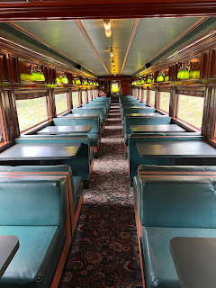 It began to get much hotter and the guide came up and told us there was an outside area that we could go stand on. We did. There was a lovely breeze out there and we began to enjoy the ride a bit more. I got curious and wandered into an unopened car. It was musty to say the least. I don’t believe it has been used in years. It did have a lovely old decor though.